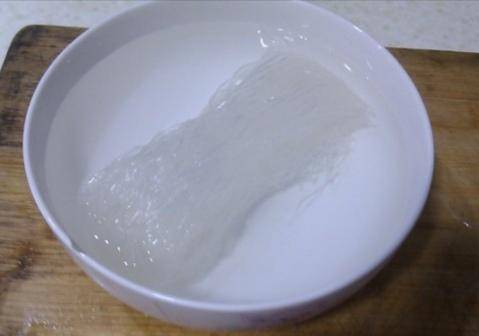 技巧二、粉絲不需要用開水泡,太熱的水會將粉絲泡太軟,炒制時會使其變得太過粘稠。