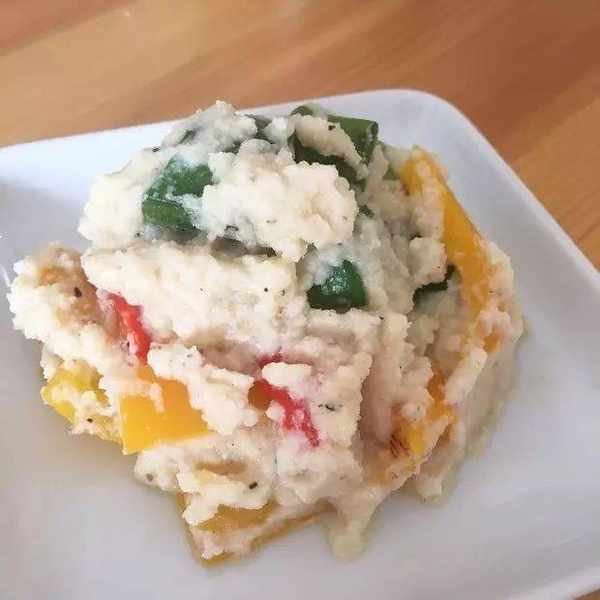 材料(4人份):豆渣70克、土豆2個、醋半勺、牛奶1勺、低脂蛋黃醬3-4勺、鹽和胡椒粉少量、黃瓜1/3根、胡蘿卜20克、火腿肉2片。
