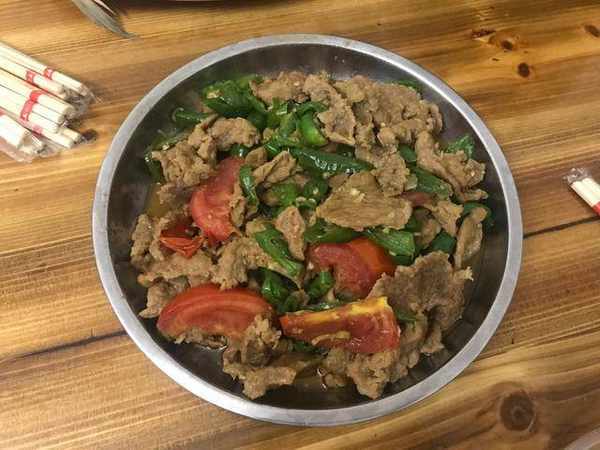 【青椒炒牛肉】食材:牛肉,青椒,西紅柿。