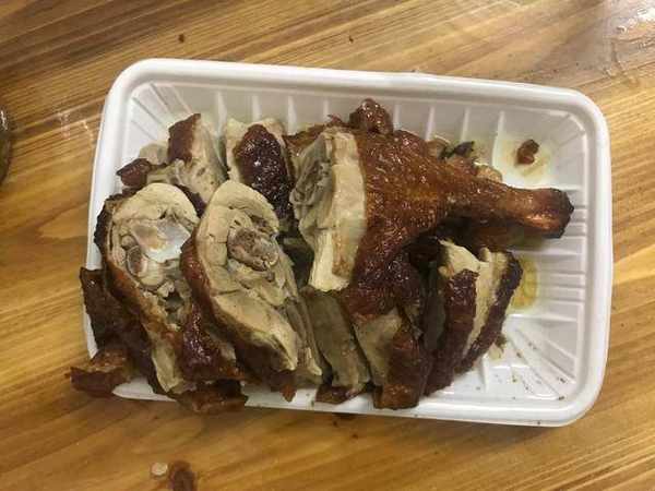 【烤鴨】小鎮上的熟食店,不是趕集的日子,一般不會準備太多熟食。買瞭2隻燒鴨,勻成瞭3份,雖然分量不多,好歹也算是一個葷菜瞭。