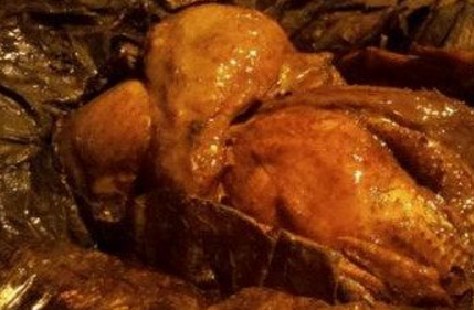 這就是大叔做的叫花雞,非常的入味,看起來跟燒雞,鹵雞都不同,這個味的雞吃起來來過癮。你們吃過這個雞嗎?因為排隊的人多,做不及,很多人都排到大後天來取瞭。這樣的叫花雞80元大傢還搶著買,你吃過叫花雞嗎?