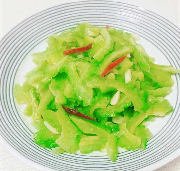 材料:苦瓜、大蒜、生薑、鹽、雞精、食用油適量。