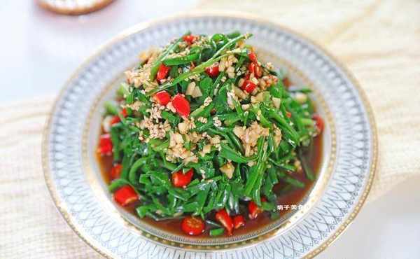 第二步:將磨碎的辣椒和小蔥用鹽水洗凈,然後自然卷起,放在盤子裡好看。