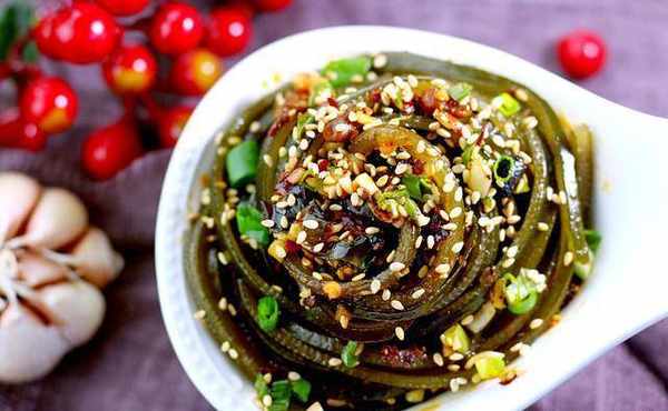 第二步:將切碎的海帶撈起自然晾涼,加入準備好的調料拌勻即可食用。