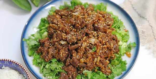 第九步:最後放入羊肉快速翻炒均勻,盤底鋪上切碎的香菜,上面放上炸好的孜然羊肉開吃。