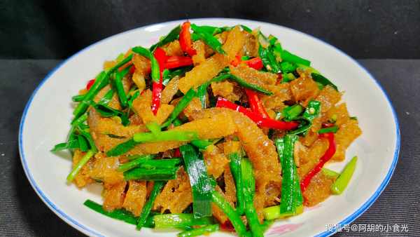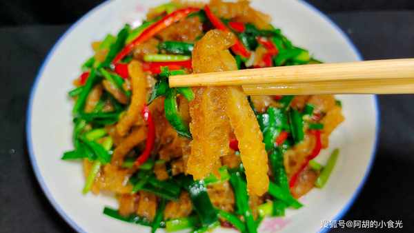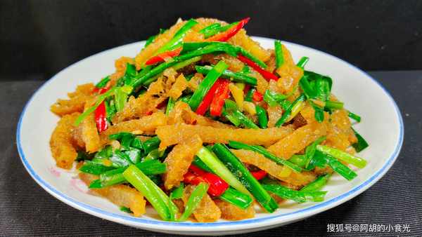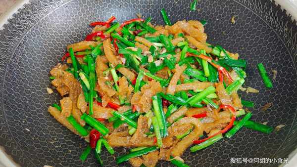 吃韭菜也別再炒雞蛋瞭,換個花樣吃一吃更有滋味,比如前天分享瞭韭菜炒豆幹絲,今天再來分享一道八九成人沒吃過的韭菜炒皮肚絲。