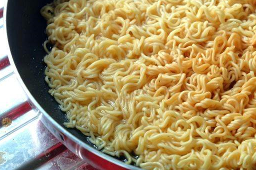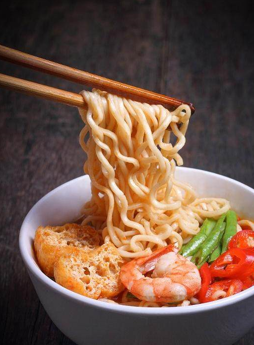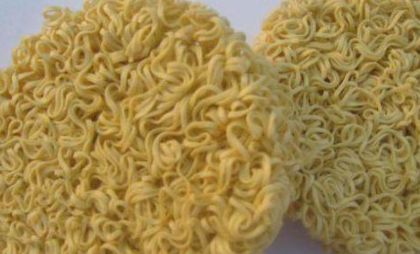 速食產品的現代方便面的制作方法主要有兩大步驟。第一、冷凍操作:方便面類是指以面粉、蕎麥面粉、通心粉等為原料,加水、切條經過蒸煮後成形的面條。由蒸煮得到的α化面(水煮面)降溫至30℃或此溫度以下時,就放入預先已將溫度調節為-30~-40℃的冷藏庫中,使之凍結。在4~0℃之間急劇冷卻,極力排除β化淀粉的生成,將水煮面條置於0℃之下。然後用3~4個小時的時間在-30~-40℃之間緩慢冷凍。在這個溫度區域,用幹冰或液態氮使其瞬間急冷至-50℃,其冷凍效果會更好。第二、真空幹燥:按上述冷凍操作得到的方便面,在真空幹燥室內進行真空幹燥。