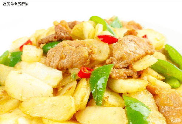 2.加入瘦豬肉絲煸炒至變色,加入醬油、鹽、味精調味;加入荸薺翻炒均勻,炒至荸薺熟透即可食用。