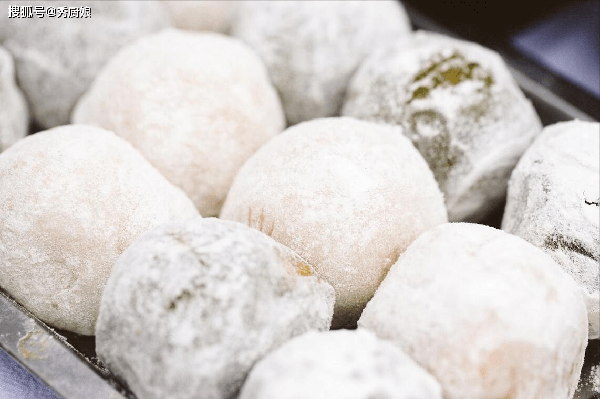 3.將紅豆沙包入圓球中間,搓圓成糯米糍狀;煮開水,將糯米糍放入水中煮至浮起,撈出即可食用。
