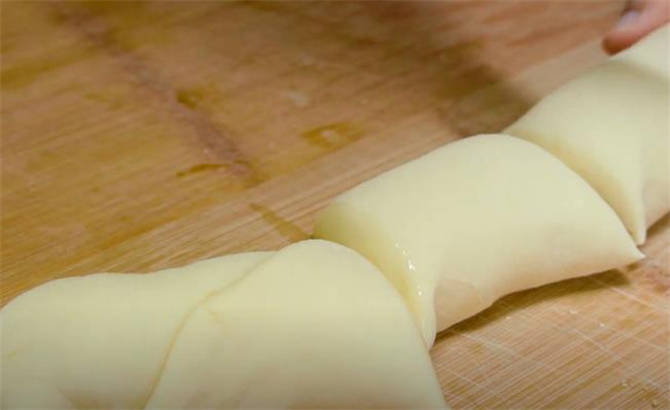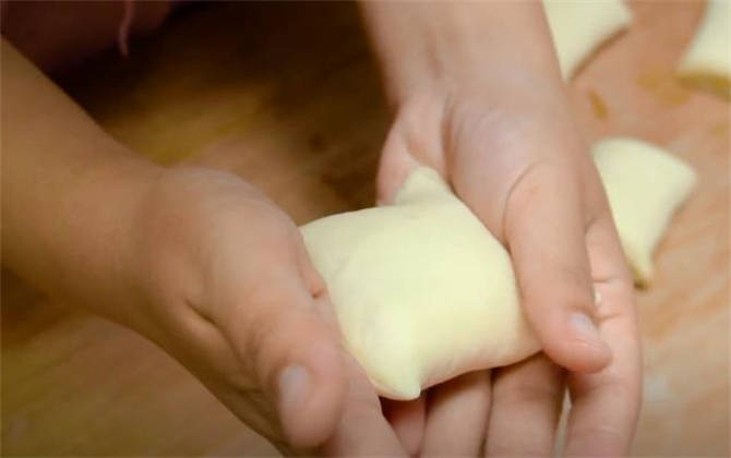 5.把兩邊的收口處捏緊,然後這樣向裡按壓,這樣一個胚子就做好瞭。