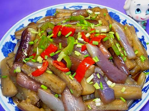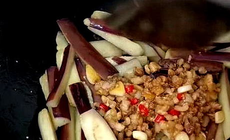 鍋中倒入油,油熱放入薑絲、蒜末和紅辣椒,超出香味後放入茄子翻炒,快熟的時候,放入蠔油、生抽、雞精和鹽調味,再翻炒均勻炒熟即可出鍋。
