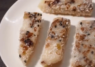 之後的這一步就是使用上一個蒸的鍋子,水開之後就可以把這裝有糊糊的放進去是大概20分鐘的時間,我的媽咪說15分鐘就可以瞭,但是其實我的比較厚一點,所以就加上瞭五分鐘的時間的呢,這樣可以保證是可以熟的。熟瞭之後,等到隻是微熱的時候就可以脫模瞭,之後就可以使用上一個刀子,切成自己想要的形狀,蘸上之前就弄好的椰蓉,這是為瞭它們不蘸在一起。之後就是可以進行吃上瞭呀,記得用上工具來拿哈,容易粘手滴。