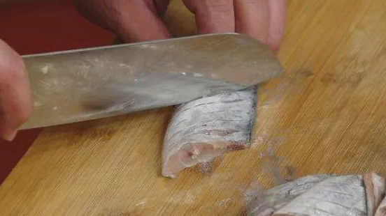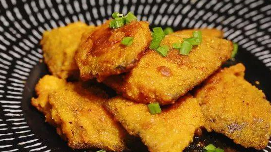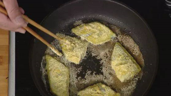 鍋內少油,七成油溫下入帶魚,煎制兩面金黃盛出備用。