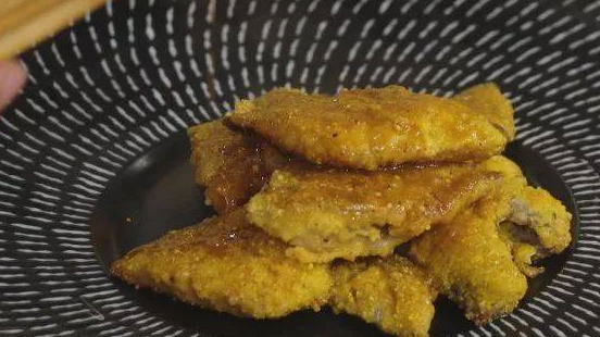 醃制好的雞蛋裹上一層蛋液,再用玉米面拖粉。
