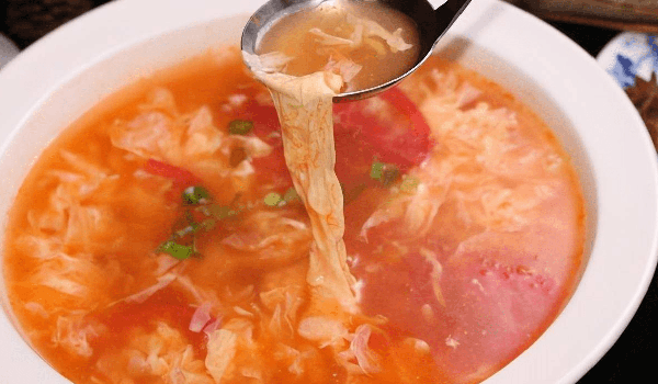 此道湯以鮮香可口、營養豐富、湯清味鮮為特點。西紅柿帶有酸甜口感,雞蛋花呈細膩嫩滑狀態,非常可口,喝上一口會讓你感覺非常清爽。
