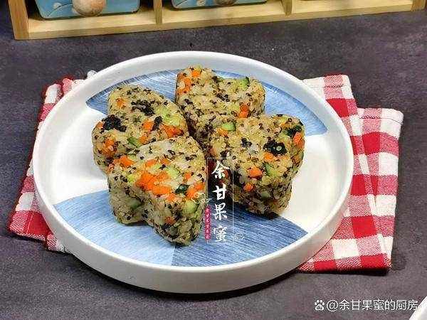 做法:將胡蘿卜和黃瓜切丁,將米飯和所有食材拌勻,用模具壓出形狀即可,還可以帶便當上班。