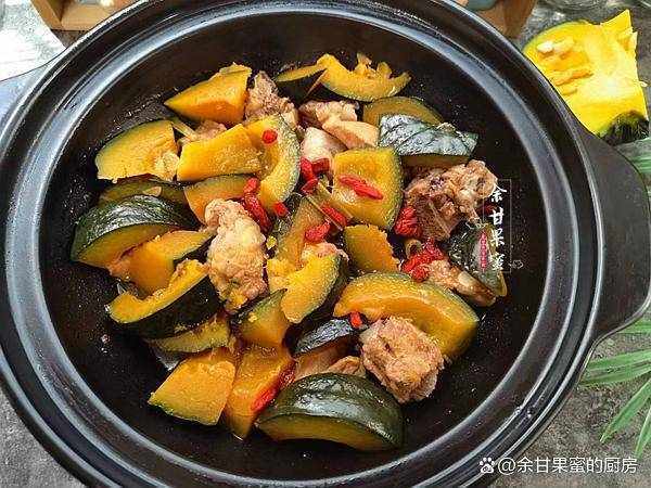 不想吃米飯,就用南瓜當作主食吧,與排骨燉一燉即可上桌瞭,也算是改善一下夥食瞭。
