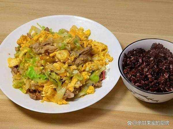 第二天:卷心菜雞蛋炒瘦肉+紫米藜麥飯