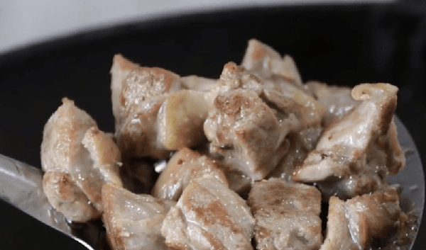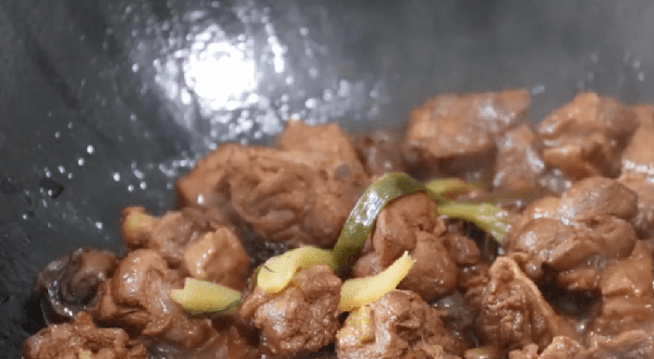 4、 鍋中可以倒入少許的油,把鴨肉倒進去煸炒幾下,等表面被炒到微黃先盛出來。