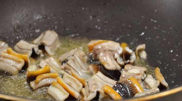 4、 鍋中倒入適量油,把鱔魚倒入鍋中快速翻炒,變色後加入少許黑胡椒碎。