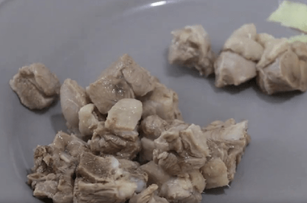 1、 鴨腿肉先用清水沖洗一下表面的雜質,接著再剁成大小均勻的塊狀。