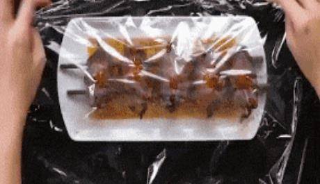 第四步:然後用耐熱保鮮膜包裹好雞翅。