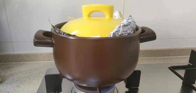 3.架子上或錫紙球上鋪上錫紙,錫紙邊緣要高於砂鍋鍋口,反復交錯鋪上三層錫紙