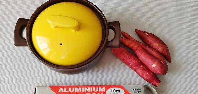 紅薯三個,幹燒砂鍋1個,錫紙3張