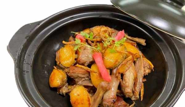 取一個幹凈的砂鍋,放入香油煸香老薑片,放入番鴨、鮑魚略煎,烹入高粱酒熗香,淋入適量的水煲45分鐘