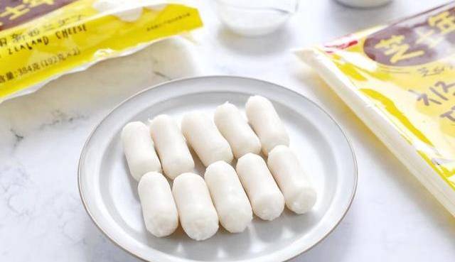 1、先把需要的食材都準備好,小編選擇的是芝士年糕,外面是濃鬱香甜的大米,裡面包裹著香濃的芝士,味道清甜軟糯,口味也很清香,結合在一起,不管是怎麼吃都非常好吃哦。準備一個小鍋在裡面加滿水,先把水燒開,燒開之後把年糕放進去煮三分鐘左右,然後撈出,過一下涼水。這裡年糕直接下去煮就可以瞭,不需要提前解凍哦,煮好瞭年糕非常的Q彈。