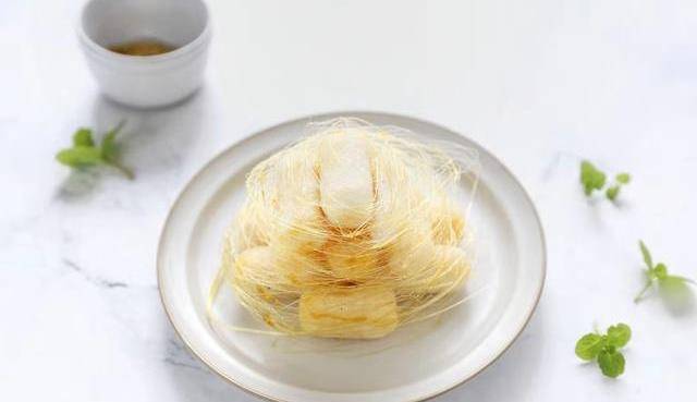 其實制作方法還是非常簡單的,如果自己之前做過拔絲類的美食就非常的好做。這裡要註意的是先把年糕放在水裡面煮三分鐘左右撈出晾涼,然後就可以放在鍋中煎炸至兩面金黃,撈出就可以瞭。不過煎炸的時候,油不用放的太多,而且年糕煎炸之後放在吸油紙上吸取多餘的油分,之後就是熬糖漿。熬糖漿的過程中,一定要中小火,火不能開得太大,否則就會糊掉,在最後拉絲的過程,如果糖漿凝固的時候,可以開中小火,把糖漿融化就可以拉絲瞭,其實方法還是非常簡單的,關鍵要靠自己的手法。