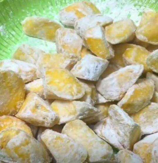 控水撈出,均勻的裹上淀粉(裹兩遍淀粉),