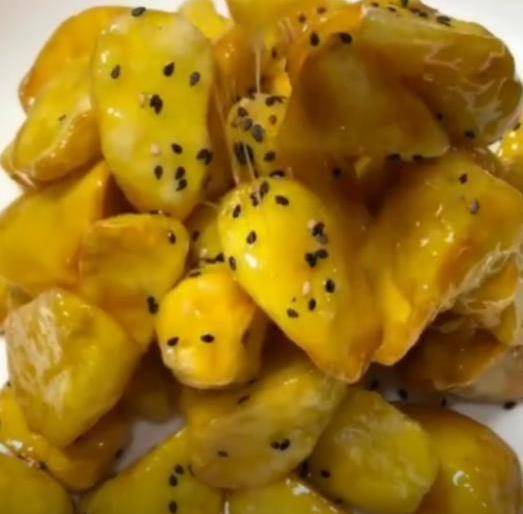 撒上白(黑)芝麻一道簡單的拔絲地瓜就做好瞭。