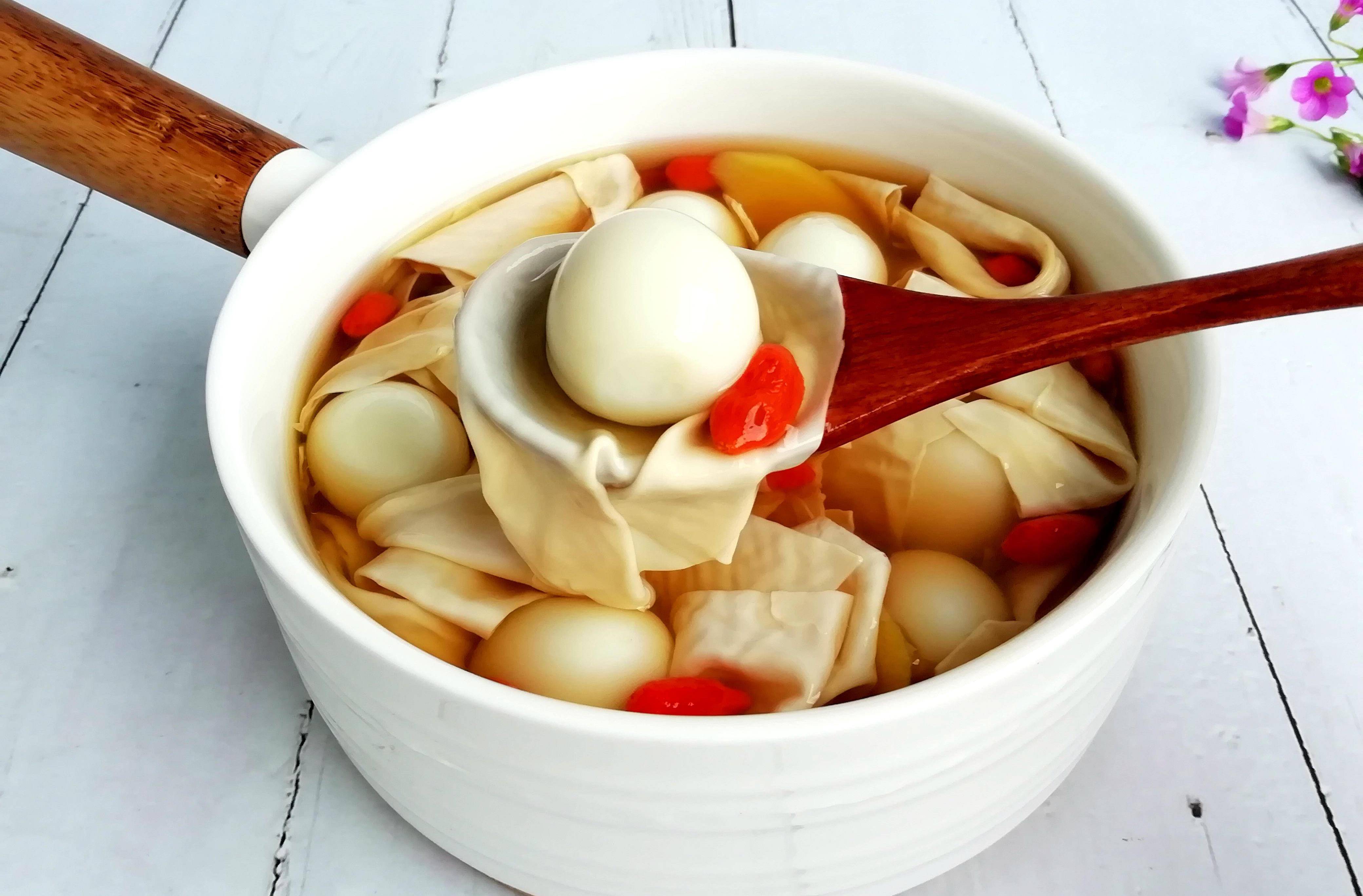 在廣東人眼裡,沒有糖水的夏天是不完整的!糖水的種類有很多,清熱的、祛濕的、美容的、溫補的等等。今天我給大傢推薦的是廣東女人最愛的一款糖水,一周都要喝二三次,還有很多人坐月子的時候也會喝這款糖水,有補氣血、驅寒、祛濕等功效。腐竹雞蛋糖水,小時候經常看到媽媽煮,每次媽媽煮這個糖水,我都會守在邊上看著,趁媽媽不註意就咬紅糖吃,哈哈!今天下雨天氣悶熱,沒什麼胃口,中午吃得比較少,下午煮鍋糖水來吃,今天沒用雞蛋,用的是鵪鶉蛋,一口一個,特別香!