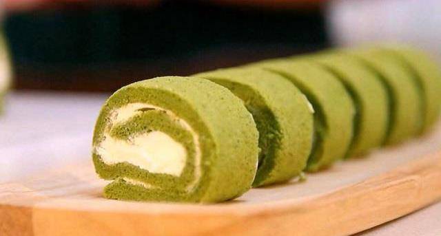 做法:1.艾草打碎成漿備用。2.蛋黃加糖、加油用手動打蛋器攪至乳化,加入艾草漿攪勻。3.篩入低粉和鹽攪勻,最後加入朗姆酒攪勻。4.蛋白加白醋用電動打蛋機打成粗泡,再分三次加入白糖打成中性偏幹。5.蛋白分三次加到蛋黃糊中,用刮刀翻拌均勻。6.烤盤墊上油紙,將拌好的面糊倒入烤盤抹平。7.烤箱,選擇上下火160度預熱,烘烤15分鐘左右,取出倒扣。8.稍涼後揭掉底面油紙,重新蓋上一幹凈油紙,翻面。9.可抹上一層薄薄果醬,用搟面杖輔助卷起,固定半小時後切片!