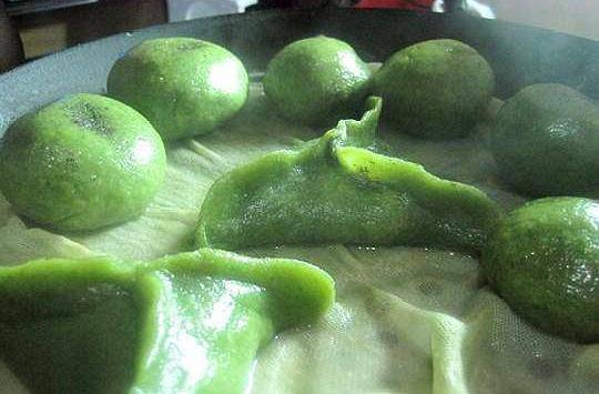 做法:1.將剛采回來的艾葉挑選整理一次,留下嫩葉嫩莖,用清水洗幾次就可以放進鍋裡煮(一般是三次就可以瞭,註意洗的時候手不要太用力扭出艾汁,不然做出的艾米果,味道不好)。2.大火燒開水,放入艾葉草、放堿,大火煮15分鐘左右。3.將糯米粉和煮熟的艾葉放在一起揉搓,可酌情加入適量清水。4.放入食餡,將面團揉成小團,壓成厚薄適中的形狀。5.放入鍋中清蒸,接下來就是等待艾葉果出爐啦。
