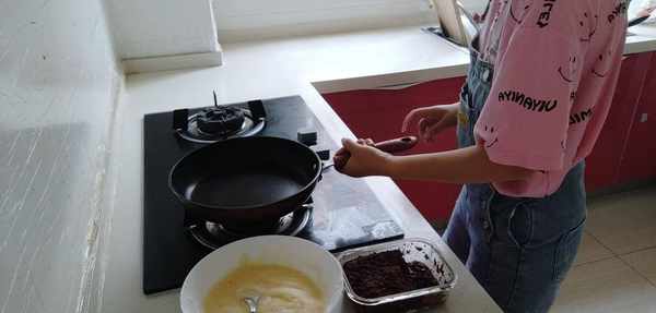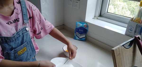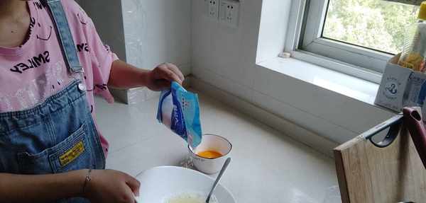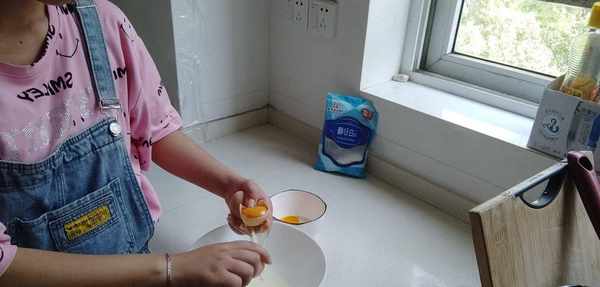 1.我在傢做舒芙蕾所用到的食材:雞蛋、糖、紅豆沙。