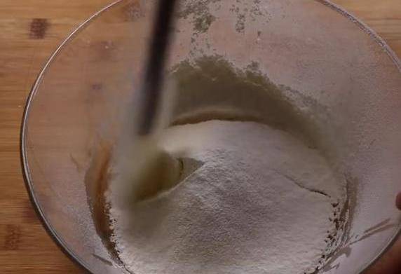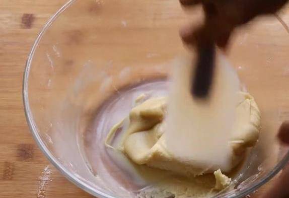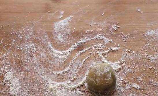 3、加入100克的普通面粉,同樣攪拌均勻和成面團。面粉最好用篩子篩一下,免得有小顆粒,不用篩子也行,和成面團的時候要註意看有沒有小顆粒。這個面團是用來做月餅的皮的。