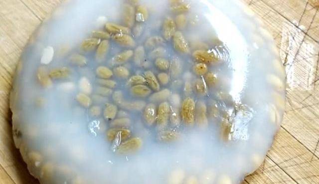 第四步:準備一把葡萄幹洗幹凈,放在黃豆裡面,再倒上淀粉水上鍋蒸15分鐘,時間到出鍋晾涼,然後蓋上一層保鮮膜,放在冰箱裡冷凍5個小時。