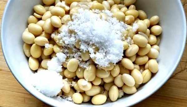1:先把黃豆表面的灰塵洗幹凈,然後再倒上清水,浸泡1晚上,把泡好的黃豆倒在鍋裡,加上冰糖和充足的清水,開大火燒開,然後煮15分鐘,時間到把黃豆撈出來,加上白糖攪拌均勻,把黃豆水晾涼備用。
