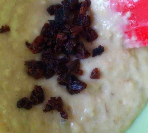 原料:低粉、雞蛋、香蕉、葡萄幹、無鉛泡打粉、小蘇打、細砂糖、橄欖油、檸檬汁。