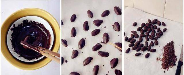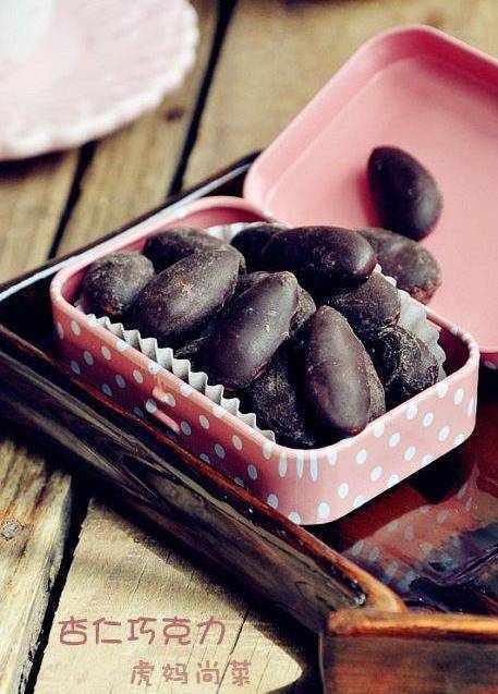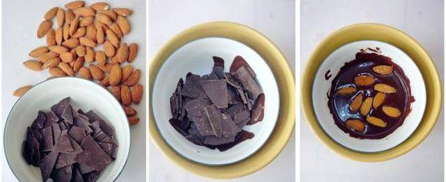 材料:大杏仁48顆(炒熟的),巧克力120克。
