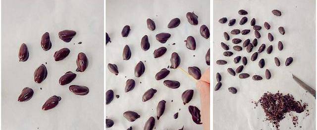 2.操作過程中,切忌巧克力溶液中進入水,這樣巧克力液就會不與果仁粘合。