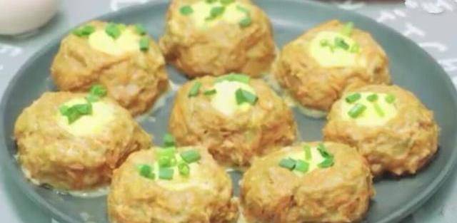 開大火蒸開,放入丸子蒸15分鐘,出鍋後撒上我們事先準備好的蔥花,一盤胡蘿卜形式的蛋撻就完成瞭。