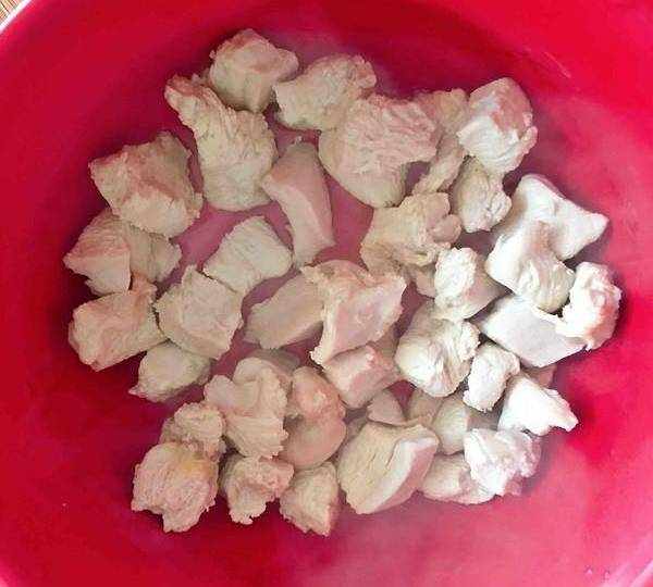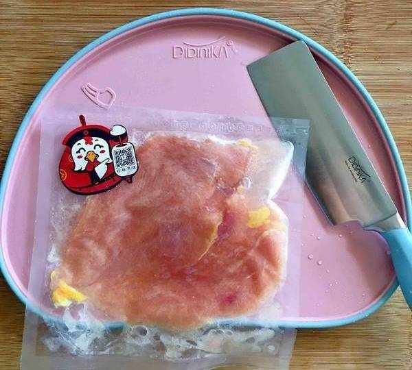 6.平底鍋刷油搟扁的雞肉下鍋翻炒五分鐘出鍋