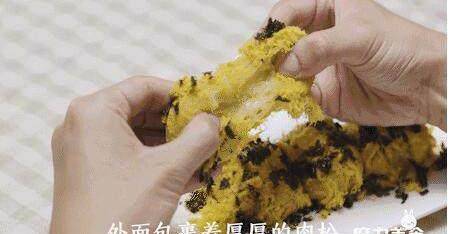 準備好一盤肉松,用糯米球在上面滾幾滾,如果肉松沾不上,可以灑點水。