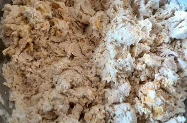 3,用筷子攪拌,沒有幹粉的時候。用手和面揉成面團。