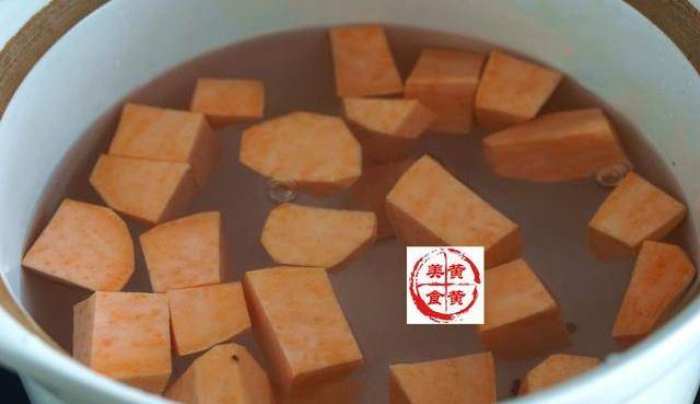 地瓜去皮切塊,放入砂鍋,加入適量的水。