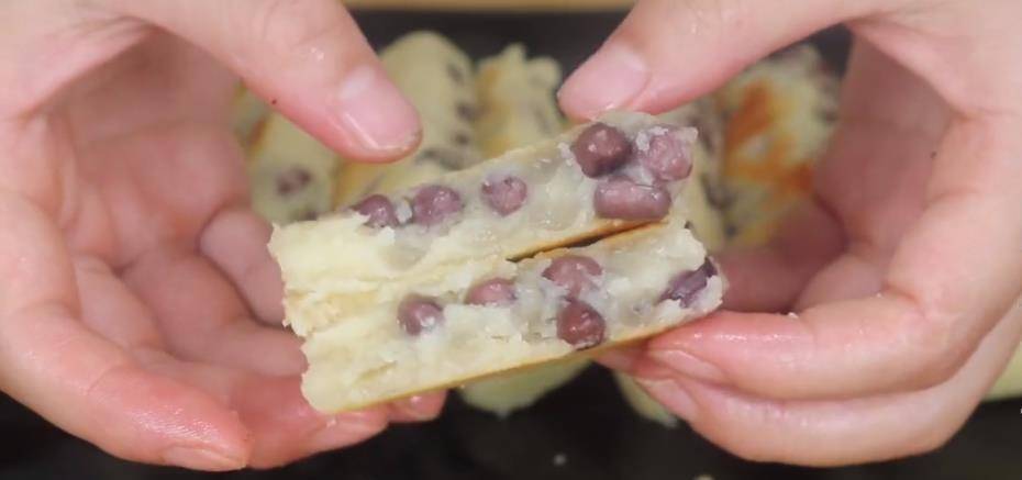 6.時間到瞭之後打開電餅鐺的蓋子看一下,我們的紅豆餅一邊已經呈現金黃色的瞭。翻另外一面繼續再烙個3分鐘的時候,關上電餅鐺的蓋子,繼續開小火慢慢烙,3分鐘之後兩面都烙熟瞭把它關火揭開蓋子,取出來就可以瞭。