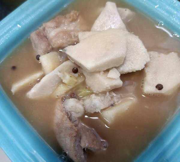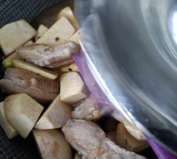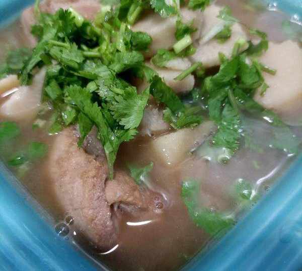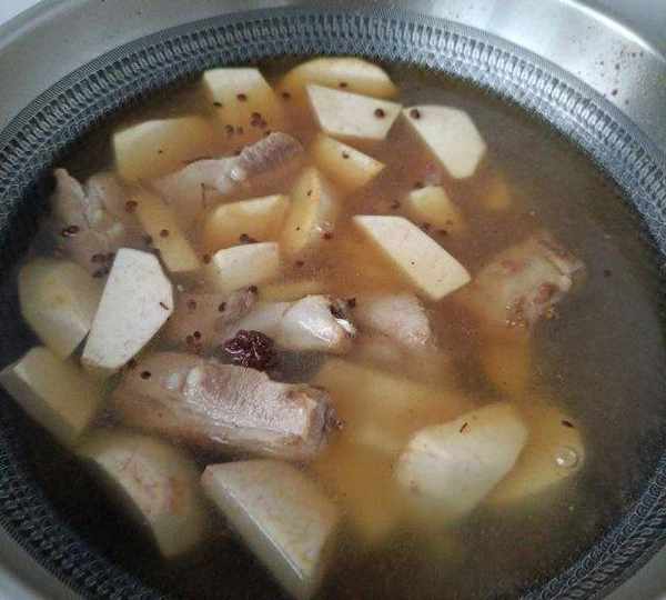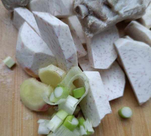 原料:芋頭、排骨、食用油、純凈水、食鹽、生抽、花椒、雞精、香菜、蔥、八角、薑。